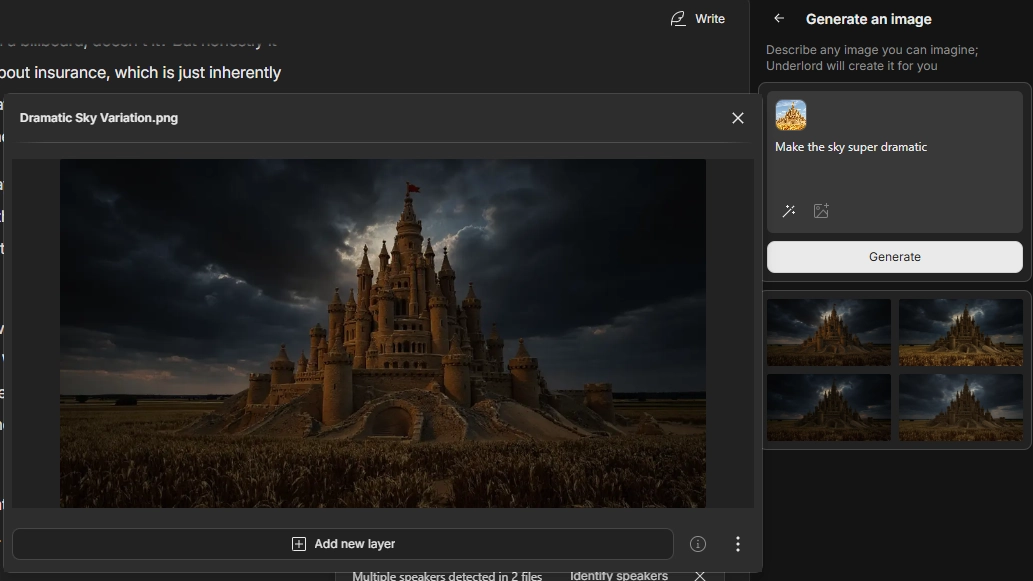 Descript’s AI videos cap at five seconds for now (though you can slow them down to stretch length). The resolution isn’t as sharp as traditional footage, but every clip renders in widescreen, which at least makes compositing into larger projects straightforward.