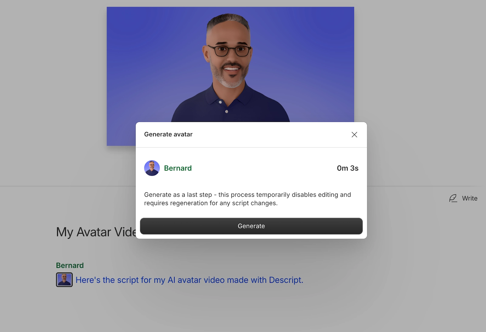 If you do make significant script changes, toggle “Write mode”, then edit and regenerate the avatar for those sections.