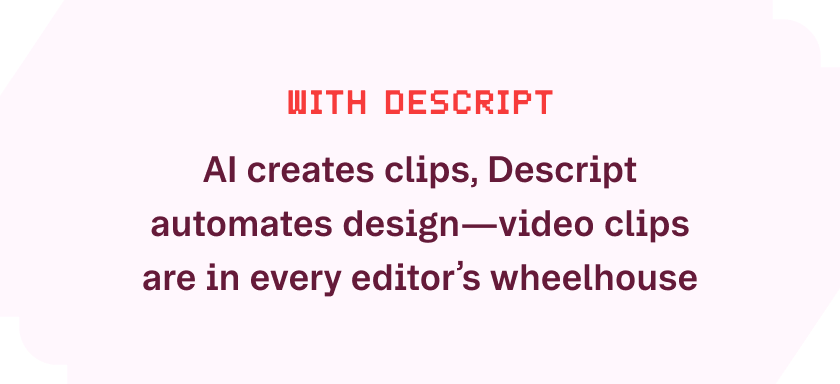 Before Descript, creating video clips just wasn’t in audio editors’ toolkit. Now, with Descript's AI-powered clip generation, audio editors can easily create social clips to boost brand awareness for their show hosts.