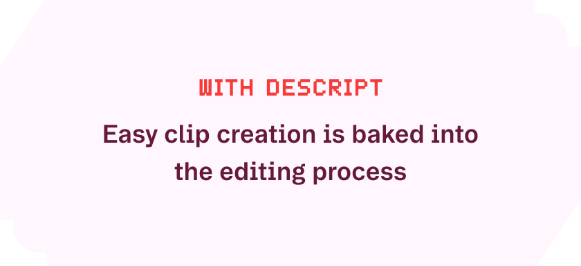 Using Descript, SaaStr has been able to repurpose 78% of their content across multiple channels, resulting in a 214% increase in year over year organic traffic. Now, as they’re editing the video, they’re also highlighting quotes they think will make for good clips directly in the transcript. All they need to do is export, add the captions, and suddenly that one video has 10 new legs.