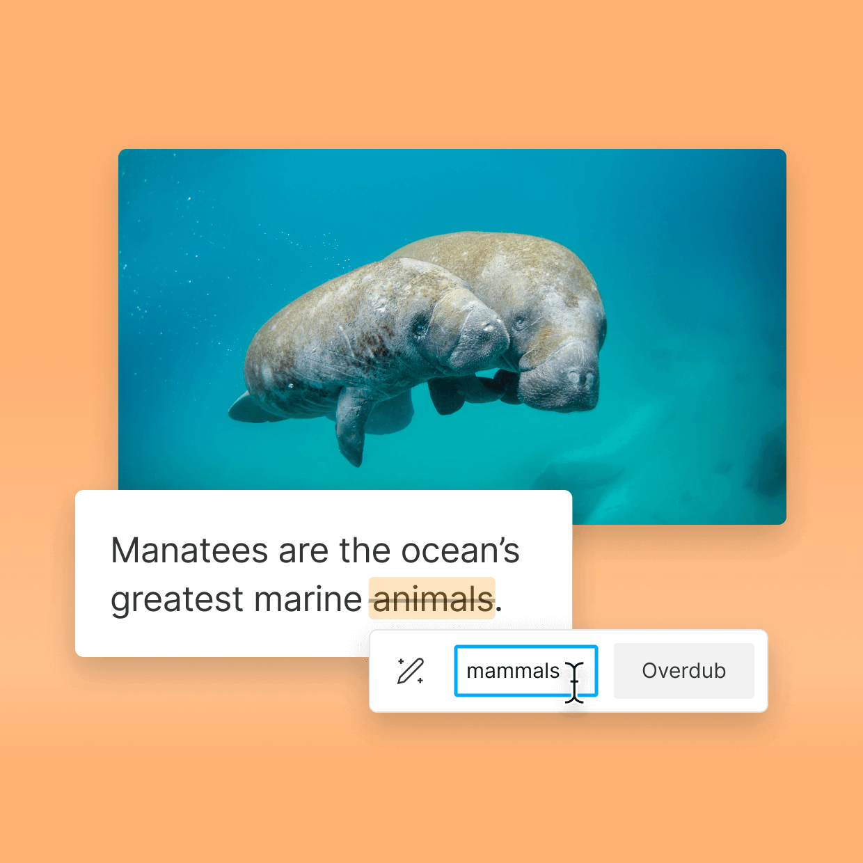 Make mid-sentence changes to real recordings – Overdub will match the tonal characteristics on both sides.