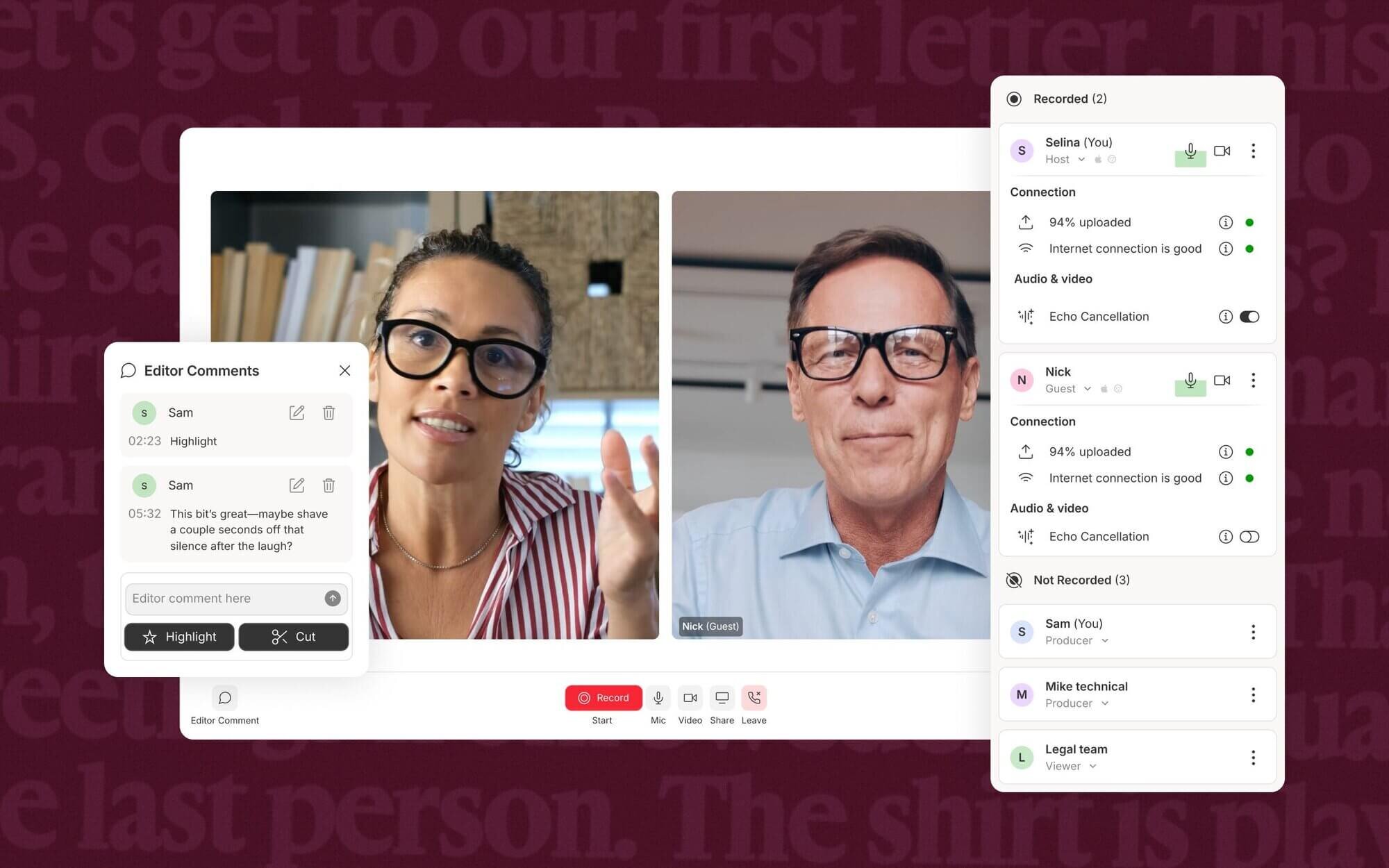 Making a great podcast or video with others starts in Descript Rooms—and now with Control Room, you can add producers without complicating your workflow.