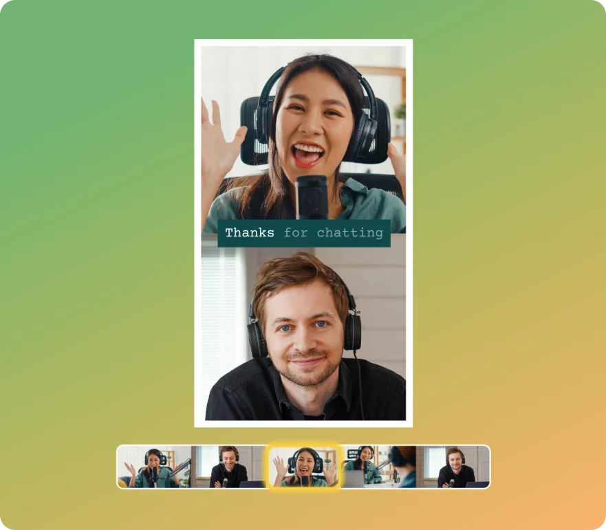 Use Descript’s AI to choose the moments most likely to go viral (it just knows), then add a layout and change the aspect ratio to make clips that pop on any platform.