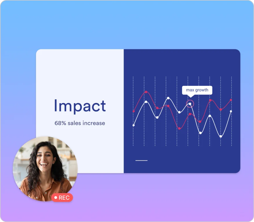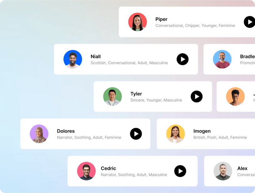 Create or update voiceovers in a clone of your own voice—or choose from over 20 stock AI voices. Then go around the world: Translate the audio into key languages or add translated captions in 20+ languages.
