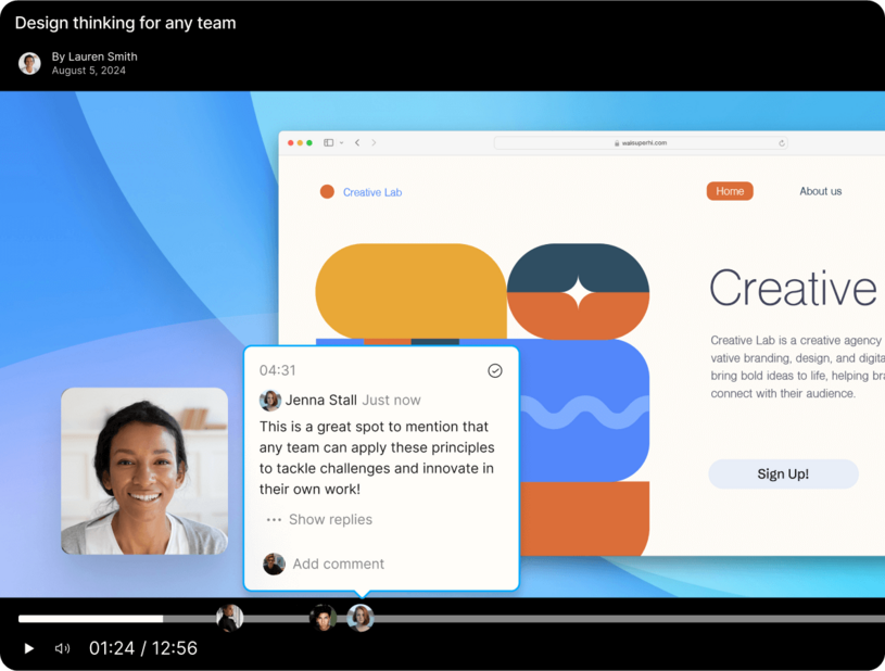 Publish live, updatable video links to share with coworkers, without exporting or downloading anything. They can leave feedback in comments, and you can respond or make updates. It’s all hosted in the cloud—where you get 5 terabytes (AKA a lot) of storage on our Business plan.
