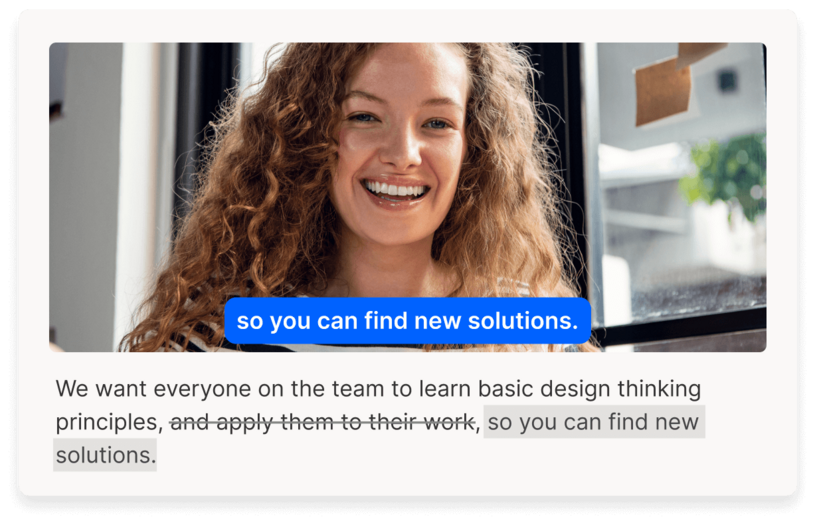 With Descript’s text-based editing and wildly useful AI tools, making really good video is quick and easy. So you have more time to nail the learning objectives—the stuff you actually like to do.