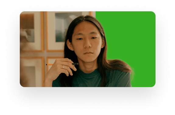 Descript's online video background remover uses AI-powered Green Screen to remove and replace your background — no physical green screen required. Upload a clip and instantly swap in an image, video, GIF, solid color, or transparent background directly in your editor.