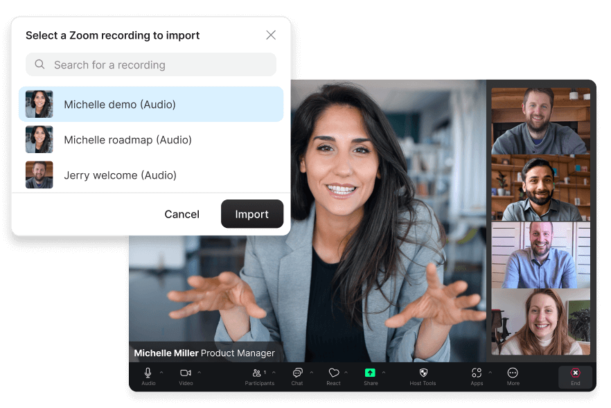 Start by uploading any MP4, MOV, or AVI file. Descript instantly generates a full transcript , describing what’s being said and seen.