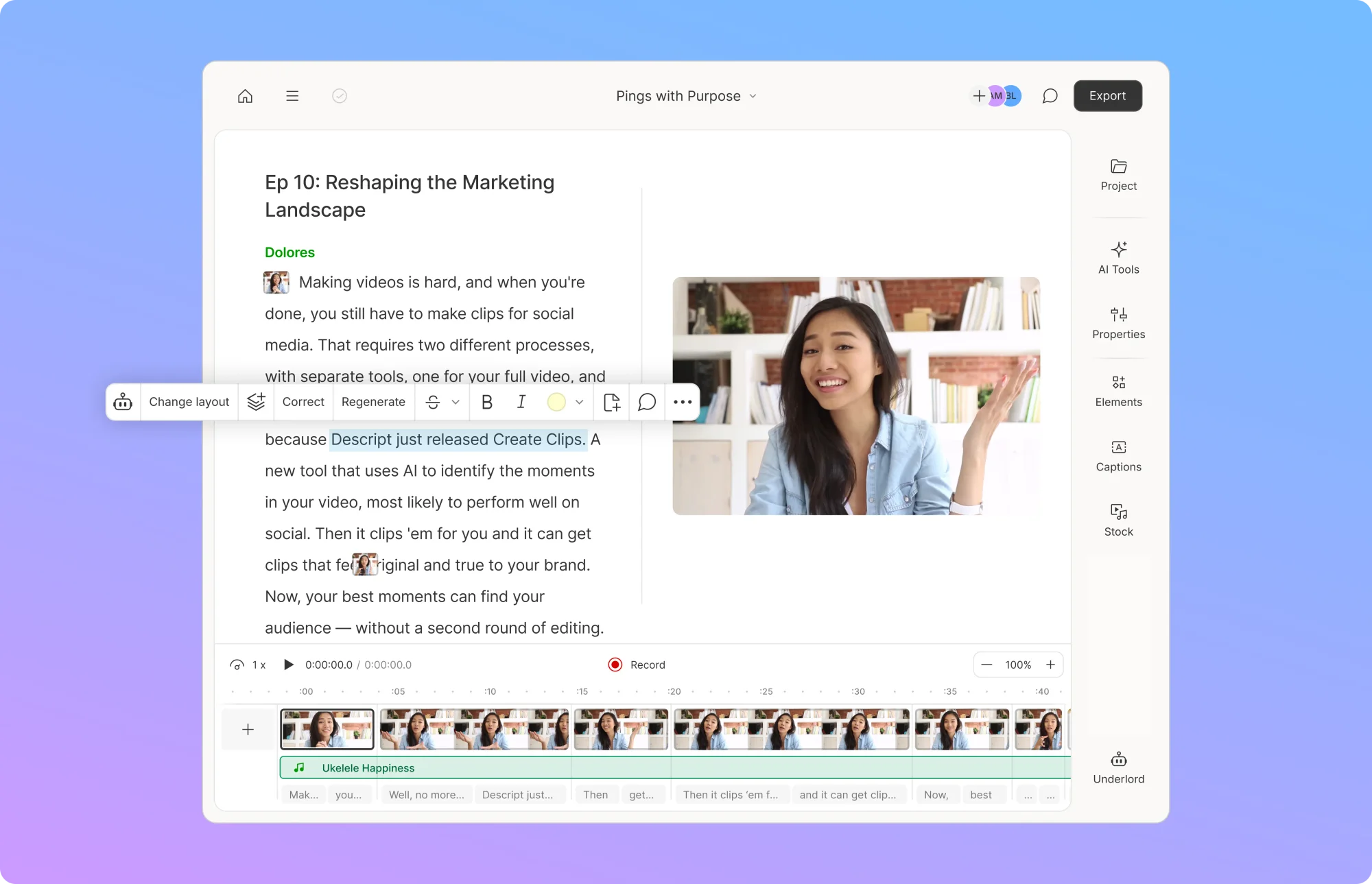 Access to Underlord, our AI video co-editor