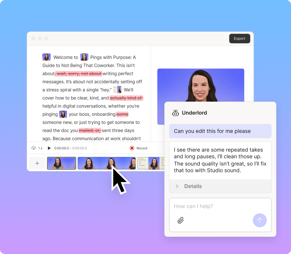 Access to Underlord, our AI video co-editor