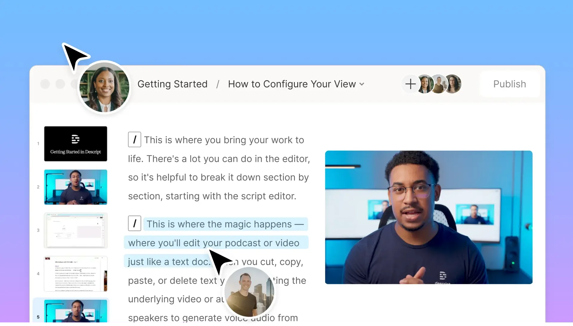 Automatic transcripts, easy rearranging, and AI-based voice cleanup let you focus on delivering a great product tour instead of wrestling with complex editing software.