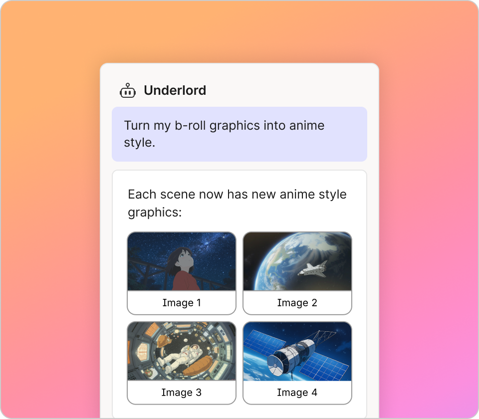 Limited use of Underlord, our agentic video co-editor and AI tools