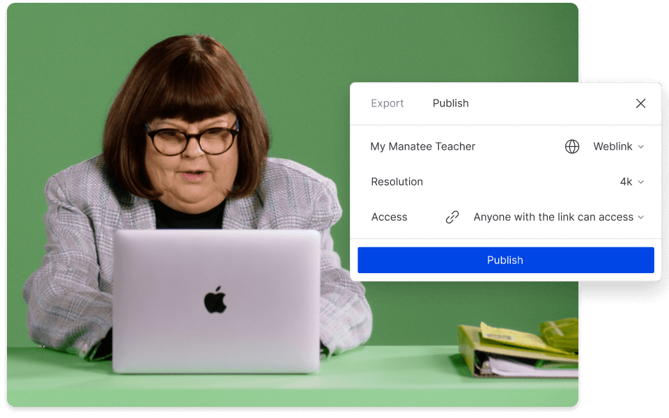 Refine your content using the transcript, timeline, and canvas. You can duplicate your project into new compositions to preserve the original. Once you’re done, select publish to export your video as an MP4 you can upload to TikTok.