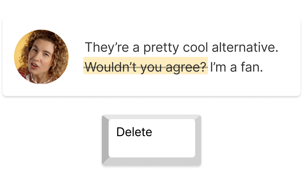 Descript’s text-based editor streamlines transcript generation and correction. The AI automatically identifies filler words and repeated phrases, so you can remove them with a single click. You can also use correction mode to quickly fix typical transcription errors.
